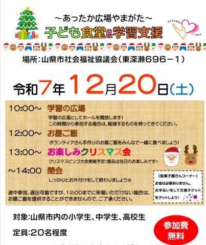 12月子ども食堂&学習支援開催のお知らせ